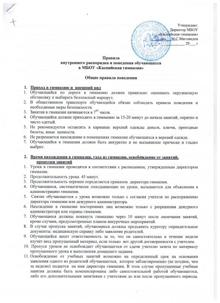 Правила внутреннего распорядка обучающихся (воспитанников)